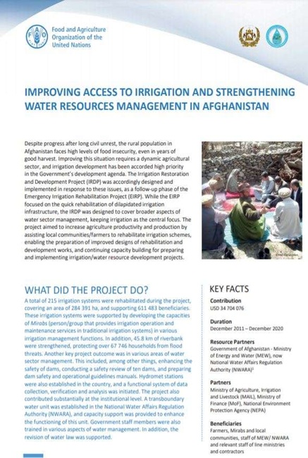 Improving Access to Irrigation and Strengthening Water Resources Management in Afghanistan