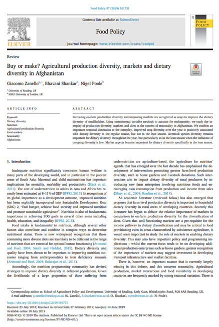 Buy or make? Agricultural production diversity, markets and dietary diversity in Afghanistan