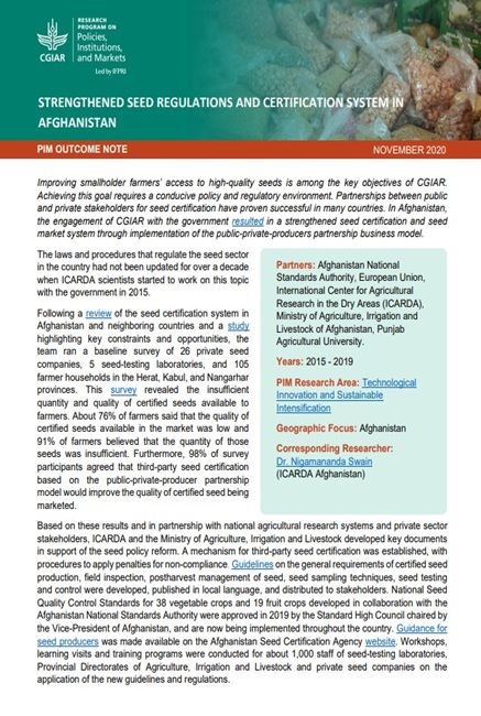 Strengthened seed regulations and certification system in Afghanistan-2020