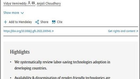 In this study, we systematically review the literature on adoption factors and impacts of labor-saving technologies (LSTs) by smallholder and women farmers in developing countries. 85 articles are included in the review after meeting strict selection criteria through a search across several electronic platforms. We highlight several research gaps that need future research focus. Future research should include gendered differences in factors such as – comparing extension models, social networks, and farmers’ underlying technological perceptions. We show the need for designing and providing access to gender-friendly LSTs suited to the context. While there are clear impacts of LST adoption on labor and productivity, few studies examine negative consequences such as labor-displacement. Further examination of these trade-offs and differential impacts on welfare dimensions across gender is needed. Our results indicate implications for future research and policy regarding incorporating gender differences in designing, promotion, and adoption of LSTs to reduce women’s work burdens and to enhance welfare outcomes.