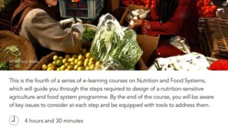 This fact sheet describes the fourth of a series of e-learning courses on Nutrition and Food Systems, which will guide you through the steps required to design of a nutrition-sensitive agriculture and food system programme. By the end of the course, you will be aware of key issues to consider at each step and be equipped with tools to address them.