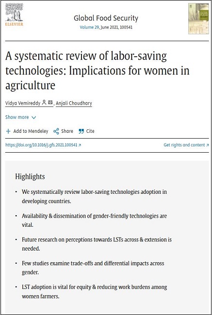 A systematic review of labor-saving technologies: Implications for women in agriculture