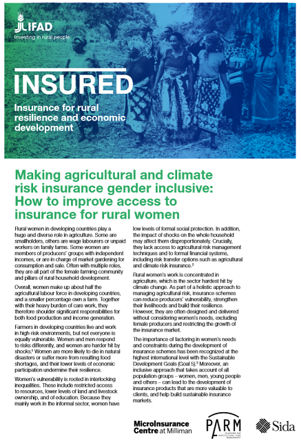 IN BRIEF Making agricultural and climate risk insurance gender inclusive: How to improve access to insurance for rural women