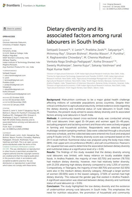 Dietary diversity and its associated factors among rural labourers in South India